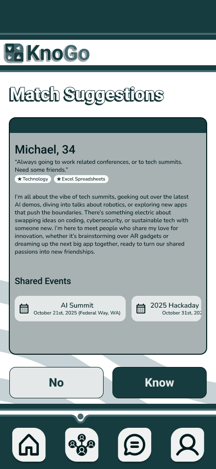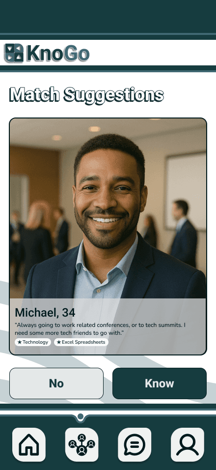Focusing on the visual design of KnoGo, I prioritized a UI that is instantly user-friendly and easy to comprehend at a glance. Every element layout, icons, and navigation, was crafted for clarity and speed, allowing users to understand and act without effort.