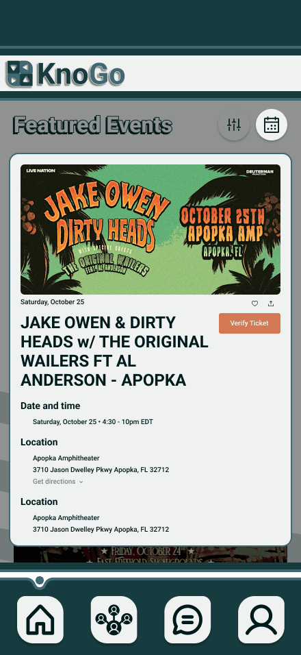 Users return to the dashboard from any point without losing context. This addresses fragmentation, solo-anxiety, and prep uncertainty by centralizing social coordination, rich event information, and mobile-first interactions, delivering confidence, efficiency, and engagement from discovery to attendance.