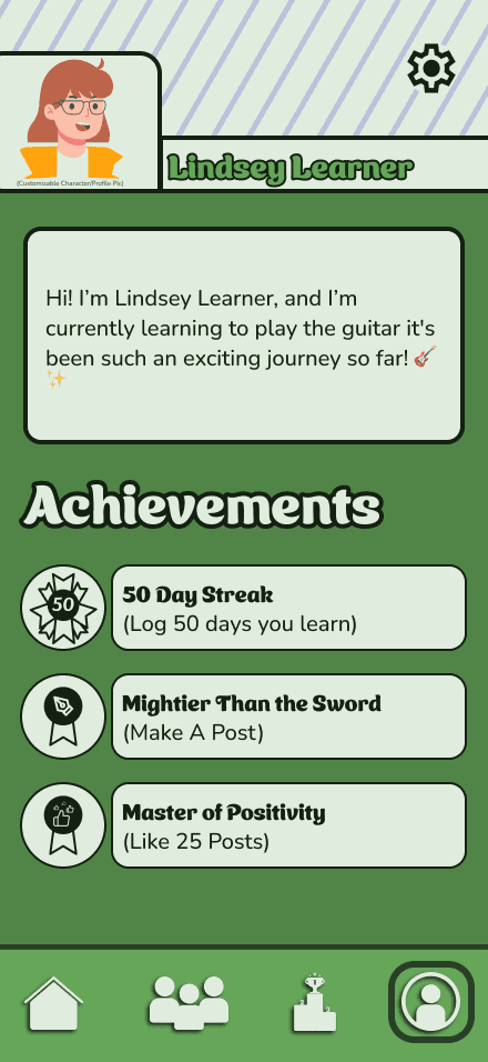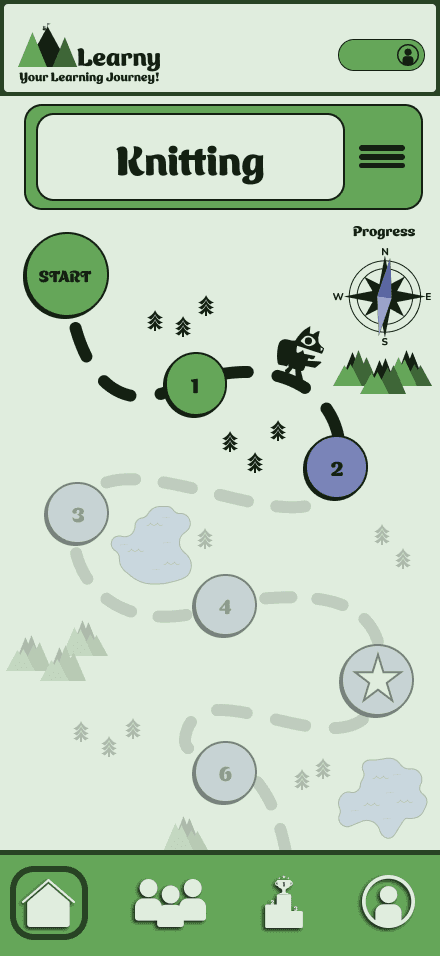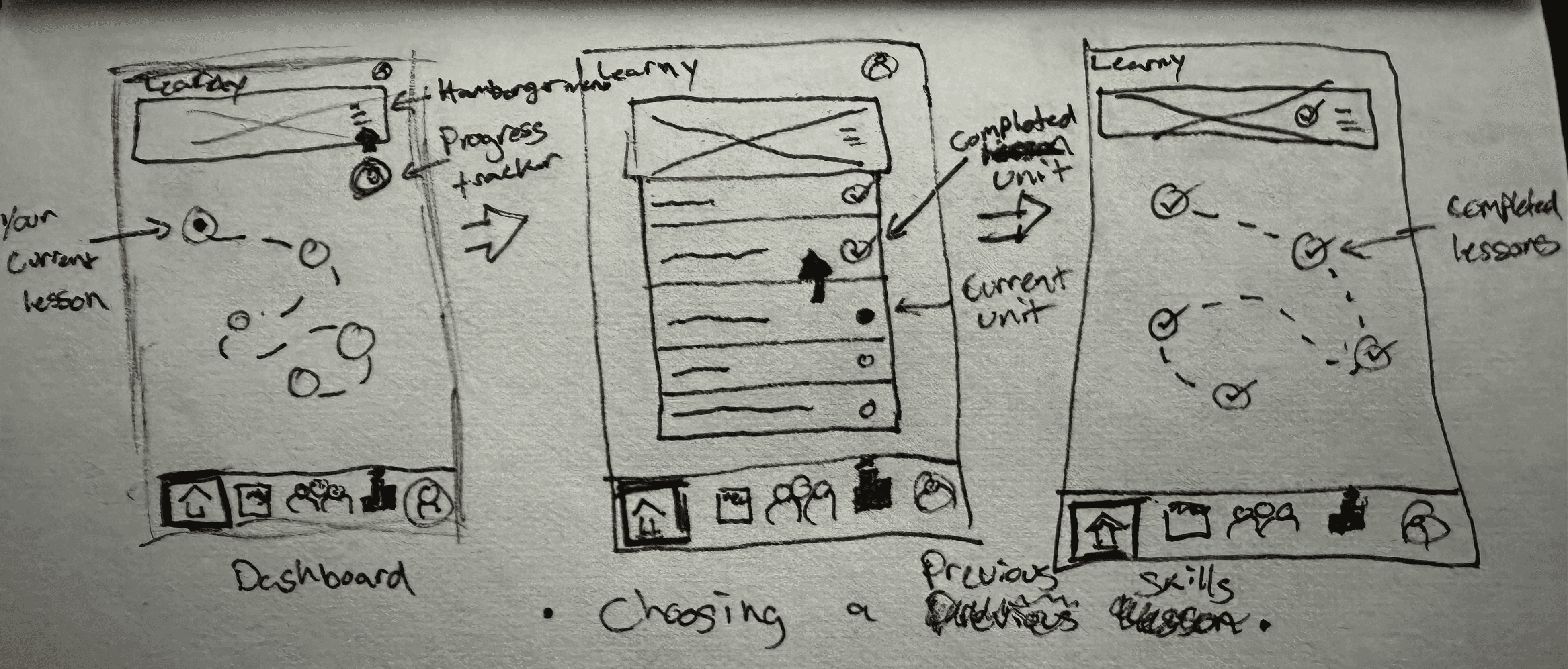 Taking the time to design Learny's Lo-Fi wireframe where the emphasis was on the gamification was a challenge to come up with and express when it came to the layout, but once I got the concept everything else fell into place.